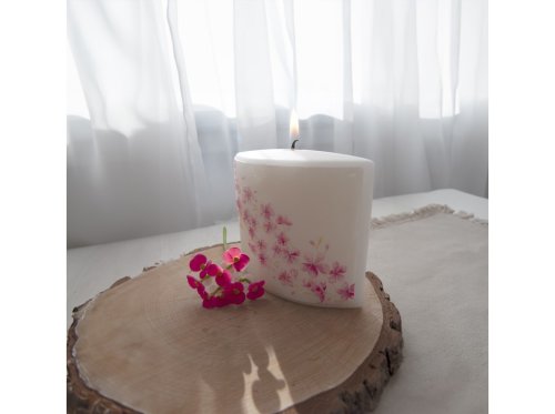 Svíčka v elipsovém tvaru s květinovým motivem je krásným doplňkem pro každou příležitost.