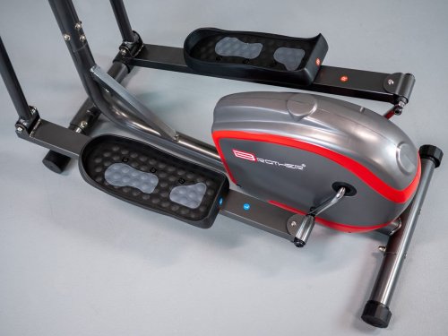 Magnetický eliptický trenažér Acra Brother BE540 je určený pro méně náročné uživatele s výškou do 187 cm a je vhodný pro použití v posilovně i v domácím prostředí. Umožňuje manuální volbu zátěže z 8 stupňů pomocí 6kg setrvačníku, tudíž si snadno přizpůsobíte obtížnost cvičení požadované úrovni. Zabudovaný počítač měří čas, ujetou vzdálenost, vynaloženou rychlost, spálené kalorie a také tepovou frekvenci, takže budete mít dostatek údajů pro důslednou analýzu vašeho sportovního výkonu i zdravotního stavu. Rovněž zde nechybí praktická funkce Scan, která obstará pravidelné zobrazení všech měřených údajů pro vyšší přehlednost během cvičení a posilování.