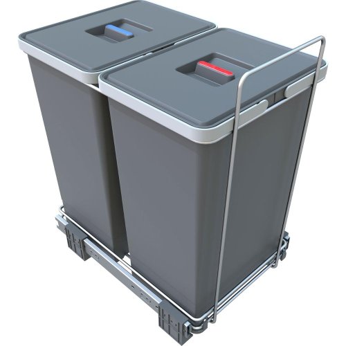 Výsuvný odpadkový koš Ecofil PF01 44B2 s pojezdy Koše se vysouvají z pevně zabudovaných pojezdů ve skříňce po otevření dvířek a vytahování je plné, takže se pohodlně dostanete ke každé nádobě Každý koš lze rozdělit na dva Ke každému koši víko Kvalitní použité materiály Velké množství variant rozměrů a objemů nádob Velice jednoduchá údržba a čištění Snadná montáž