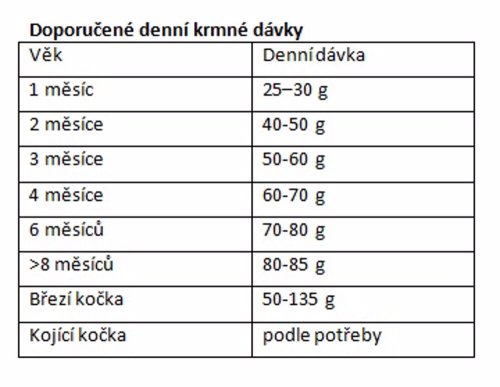 Koťata mají daleko vyšší požadavky na výživu než dospělá kočka. Základem receptury je kvalitní kuřecí maso, které spolu se zvýšenou hladinou tuků dodává mladému organismu dostatek energie pro jeho správný růst a vývoj. Cholin chlorid spolu s dalšími vitaminy skupiny B podporuje vývoj nervového sytému. Receptura je obohacena o beta-glukany posilující imunitu.
