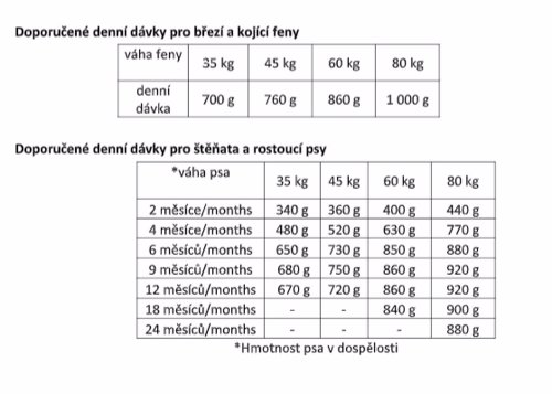 Doporučené denní krmné dávky pro štěňata a rostoucí psy