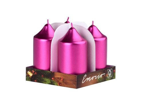 Emocio adventní válec 4ks 40x75 Metal malinové svíčky