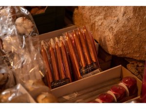 Elegantní zlaté úzké válce skvěle doplní adventní věnec.