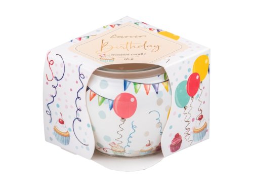 Emocio Sklo Dekor 70x62 mm Birthday, vonná svíčka