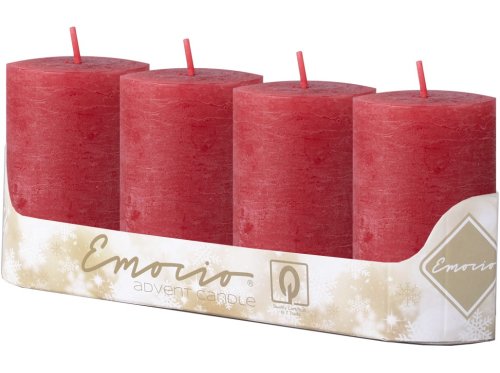 Emocio Válec 4ks 50x100 mm Rustikální červené svíčky