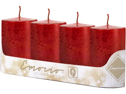 Emocio Válec 4ks 50x100 mm Rustikální Metal červené svíčky