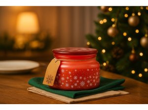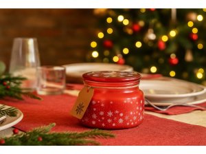 Vneste do svého domova kouzlo zimní pohody s vonnou svíčkou Emocio Magic Snowing v elegantní červeno-bílé variantě. Svíčka je uložena v kvalitním skle o rozměrech 100 × 79 mm a doplněna skleněným víčkem, které chrání vůni a dodává svíčce stylový, luxusní vzhled.