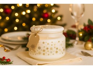 Design v bílo-zlaté kombinaci působí slavnostně, čistě a dokonale podtrhuje zimní a vánoční atmosféru. Vůně Magic Snowing je svěží, jemná a lehce sladká – připomíná tichý zasněžený večer, kdy se domov naplní klidem a pohodou.