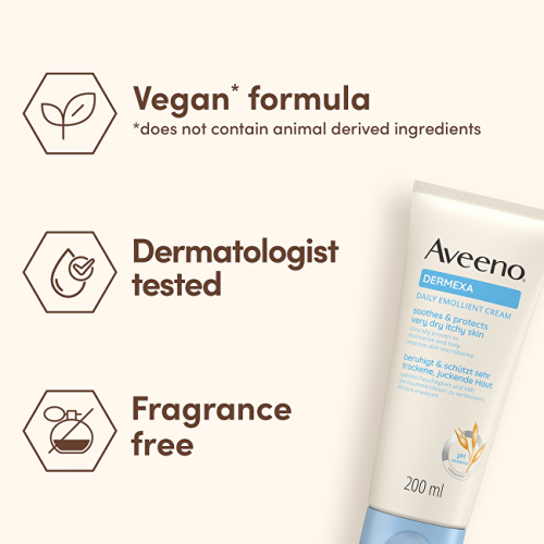 Emolienční tělový krém Dermexa s trojitým ovesným komplexem a ceramidy hydratuje a chrání velmi suchou, svědivou pokožku pro okamžitou úlevu. Je klinicky prokázáno, že pomáhá předcházet vzniku extrémně suché pokožky a zlepšuje rovnováhu kožního mikrobiomu. Tuba byla vyrobena z 49 % z recyklovaného plastu. Karton i tuba jsou recyklovatelné. Z 98 % biologicky rozložitelné složení. Expertiza AVEENO® v oblasti kožního mikrobiomu u pokožky se sklonem k atopii:Kožní mikrobiom se skládá z mikroorganismů přirozeně se vyskytujících na povrchu pokožky a je známo, že u velmi suché a atopické pokožky je mikrobiom pozměněný. Je proto důležité nejen obnovit kožní bariéru, ale také zlepšit rovnováhu kožního mikrobiomu.AVEENO® se věnuje studiu účinků ovsa již více než 40 let. V nedávné době naši odborníci objevili nové vlastnosti koloidního ovsa. Zjistili, že koloidní oves působí jako prebiotikum, které podporuje růst mikroorganismů kožního mikrobiomu.