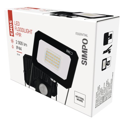 Značka EMOS Objednací číslo ZS2323 Produktové číslo 1531232300 EAN 8592920120385 příkon 20 W světelný tok 2 000 lm PIR senzor ano krytí IP44 napájení ze sítě řada SIMPO použití závěsná montáž zdroj světla LED teplota chromatičnosti 4 000 K barva světla neutrální bílá index podání barev (CRI) Ra > 80 dosah PIR senzoru 8 m rozsah pracovní teploty -20 °C až +40 °C životnost 25 000 hodin barva černá napětí 220–240 V~ délka přívodního kabelu 20 cm akumulátor ne materiál difuzoru sklo typ přívodního kabelu H05RN-F materiál těla hliník stmívání ne doba svícení na AKU neuvádí se frekvence 50/60 Hz materiál přívodního kabelu guma počet průchozích zásuvek neuvádí se proud 90 mA stupeň ochrany proti mechanickým nárazům neuvádí se typ průchozích zásuvek neuvádí se účiník > 0,7 úhel vyzařování 120° zkušební žárovka součástí balení ne záruční doba 2 roky rozměr 114 × 156 × 52 mm prodejní obal 1 ks, krabice