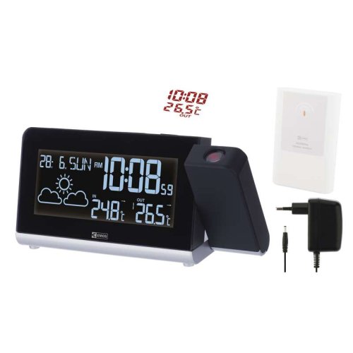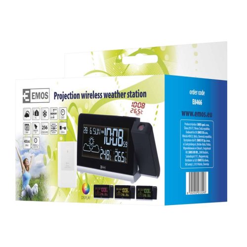 hodiny řízené DCF signálem provedení teploměru bezdrátový LED podsvícení displeje ne elektronické plošné podsvícení ne trvalé podsvícení ano barevný displej (black mask) podsvícený ano 12/24 formát času ano časová pásma ne datum ano kalendář ano budík ano, 2× opakované buzení ano vnitřní teplota -5 °C až +50 °C, rozlišení 0,1 °C venkovní teplota -20 °C až +60 °C, rozlišení 0,1 °C venkovní vlhkost ne vnitřní vlhkost ne min. a max. teplota ano možnost nastavení jednotky teploty °C/°F předpověď počasí ano teplotní výstraha ne trend teploty ano trend tlaku ne barometr ne korekce nadmořské výšky ne fáze měsíce ne dosah čidla až 30 m možné další čidlo až 3 čidla (E08400) drátová sonda k čidlu ne možnost pověšení na zeď ne napájení čidla 2× 1,5 V AA (nejsou součástí balení) přenosová frekvence 433 MHz napájení stanice 1× CR2032 (součástí balení) síťový adaptér ano, 4,5 V DC/300 mA (součástí balení) rozměr hlavní jednotky (v × š × h) 80 × 163 × 56 mm rozměr čidla (v × š × h) 100 × 65 × 35 mm velikost displeje (v × š) 42 × 102 mm prodejní obal 1 ks, krabička