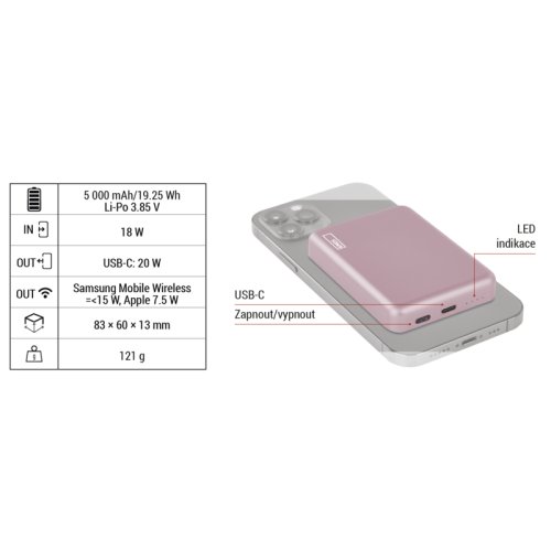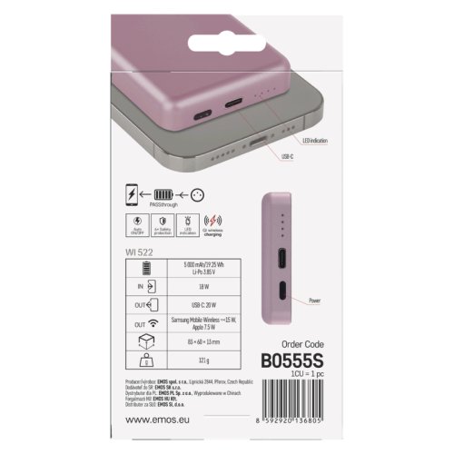 Značka EMOS Objednací číslo B0555S Produktové číslo 1613055500 EAN 8592920136805 auto ON/OFF ano kapacita akumulátoru 5 000 mAh/19,25 Wh typ akumulátoru Li-Po 3,85 V max. výkon drátového nabíjení 20 W doba nabíjení 2 hodiny passthrough ano barva lososová LED indikátor nabíjení ano LED indikátor stavu baterie ano přibalený kabel USB-C/USB-C rychlé nabíjení PD 20 W hmotnost 121 g materiál hliník max. vstupní výkon 18 W ochrana proti podbití ano ochrana proti přebití ano ochrana proti přetížení ano ochrana proti zkratu ano provozní teplota 0 °C až +40 °C typ vstupního rozhraní 1× USB-C typ výstupního rozhraní 1× USB-C záruční doba 2 roky rozměr 83 × 60 × 12,4 mm prodejní obal 1 ks, papírová krabička