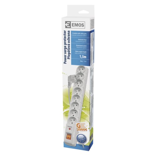 Značka EMOS Obecné číslo P53898 Produktové číslo 1909080152 EAN 8595025386052 délka 1,5 m počet zásuvek 8× 2P + PE barva šedá jmenovité napětí 250 V~, 50 Hz jištení pojistka s čas. zpož. 10 A/250 V tel. / fax / DSL ochrana ne dětské clonky ano max. proudová zátěž 10 A max. ochrana proti přetížení ano absorpce energie 150 J garance 2 000 € doba odezvy <25 ns ochranná úroveň Up 1,3 kV (L/N) anténní (koaxiální ochrana) ne EMI/RFI filtr ne indikátor přepětí ano max. zátěž 2 300 W indikátor zapojení ne rozsah kmitočtu neuvádí se USB výstup ne útlum neuvádí se vodič H05VV-F3G 1,0 mm2 zkušební vlna U0c 4 kV rozměr 445 × 54 × 55 mm prodejní obal 1 ks, krabice