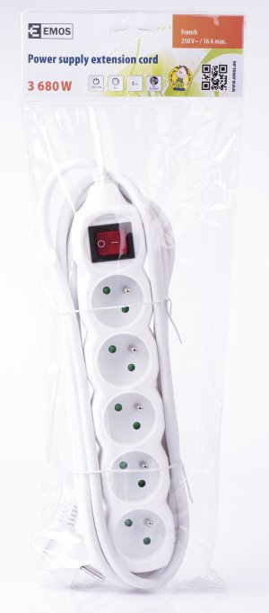 Značka EMOS Objednací číslo P1513R Produktové číslo 1902150308 EAN 8592920016503 délka 3 m počet zásuvek 5 vypínač ano barva bílá průřez vodiče 1,5 mm2 USB výstup ne napětí 250 V~ proud 16 A max. krytí IP20 typ izolace PVC max. zátěž 3 680 W vodič H05VV-F3G materiál zásuvky a vidlice plast dětské clonky ano prodejní obal 1 ks, závěs