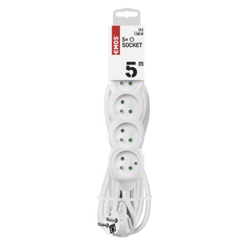 Nejdůležitější parametry délka 5 m počet zásuvek 5× 2P + PE vypínač ne barva bílá Ostatní parametry napětí/proud 250 V~/10 A max. USB výstup ne max. zátěž 2 300 W vodič H05VV-F3G 1 mm2 materiál zásuvky a vidlice plast typ izolace PVC dětské clonky ano prodejní obal 1 ks, závěs