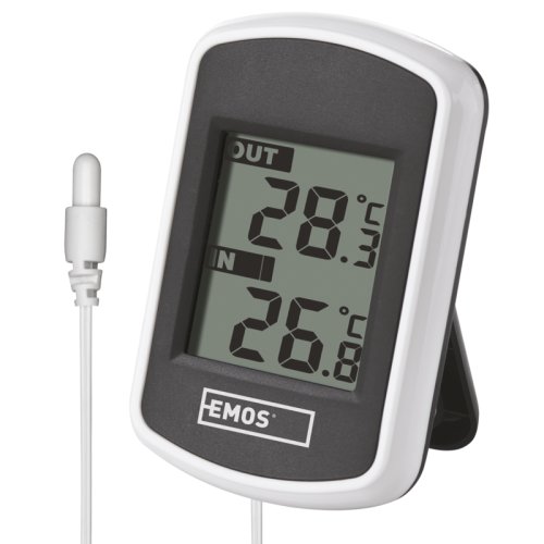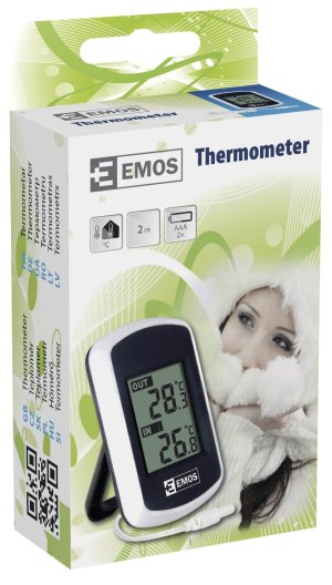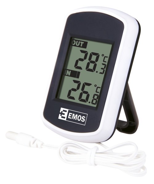 Popis produktu Drátový teploměr se zobrazením venkovní a vnitřní teploty.