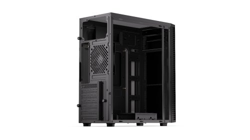 Skříň formátu Middle Tower nabízí čtyři 2,5", jednu 3,5", jednu kombinovanou 2,5"/3,5" pozici pro pevné disky a dvě 5,25" pozice, z nichž jedna je externě přístupná. Na přední části se nachází dva USB 3.0 porty, sluchátkový výstup, audio vstup pro mikrofon a čtečka microSD a SD paměťových karet. Vybavena je jedním 120mm ventilátorem na zadní straně, který zajišťuje dostatečné proudění vzduchu. Důmyslné řešení umožňuje pohodlné umístění až 240 mm dlouhého výměníku vodního chlazení na přední straně. Ve skříni je dostatek prostoru pro chladič CPU do výšky až 165 mm a grafickou kartu o délce až 335 mm. Dodávána je bez zdroje.