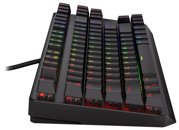 Kompaktní mechanická klávesnice pro každého vášnivého hráče. Díky spínačům Kailh Blue nabízí výbornou odezvu a výdrž přes 50 milionů stisků. Konstrukce klávesnice z hliníku vykazuje jen tu nejvyššímožnou odolnost a stabilitu. Klávesy jsou RGB podsvícené a nabízí možnost vlastního nastavení. Klávesy jsou navíc také plně programovatelné, díky tomu lze klávesnici individualizovat přesně podle potřeb hráče a hrané hry. Samozřejmě nechybí ani funkce Anti-Ghosting a N-Key rollover. Připojení je realizováno skrze odnímatelný USB kabel.