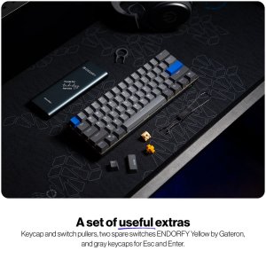 Bezdrátová mechanická klávesnice s kompaktním 60% layoutem a exkluzivními Endorfy Yellow spínači.