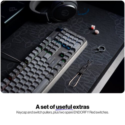 Prémiová konstrukce s hliníkovou horní deskou zvládne každou herní session bez ohledu na intenzitu. Je pevná, stabilní a nezlomná v jakékoli akci. Provedení s 3 vrstvami akustické pěny eliminuje vibrace a dutý zvuk. Díky tomu je každý stisk příjemný a klávesnice nezní jako nějaké staré železo. Endorfy Thock V2 US je vybavena spínači Endorfy Red, které jsou speciálně navrženy pro hladký stisk bez zadrhávání.