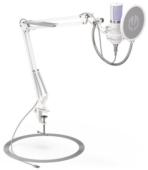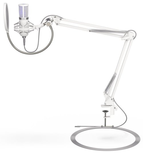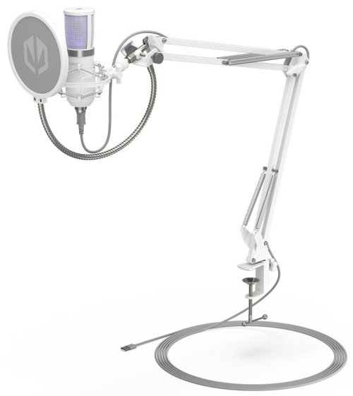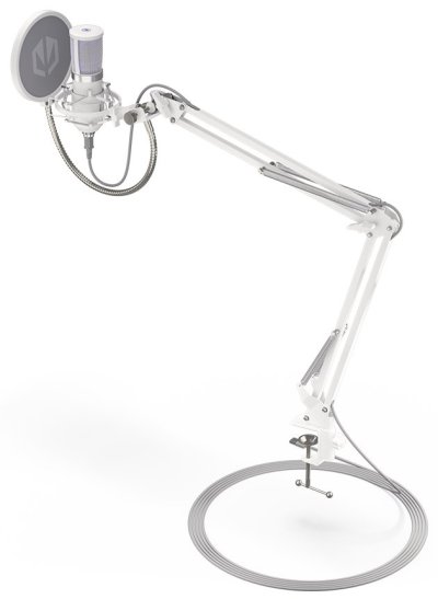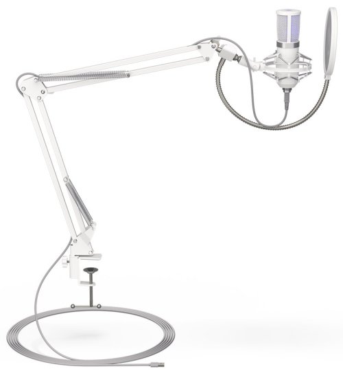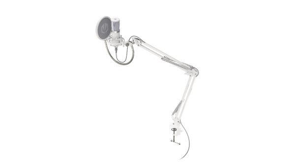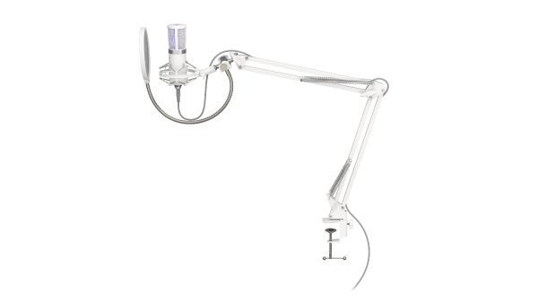 Dlouhé polohovatelné rameno šetří místo na vašem stole a umožní vám mikrofon rychle a jednoduše nastavit do požadované polohy. Konstrukce umožňuje uchycení na stranu desky stolu, čímž šetří prostor pro další důležité věci. Díky systému Plug & Play je během okamžiku připraven a vy můžete začít mluvit a využívat mikrofon naplno. Elegantní design Onyx White navíc dá vašemu domácímu studiu punc exklusivity.