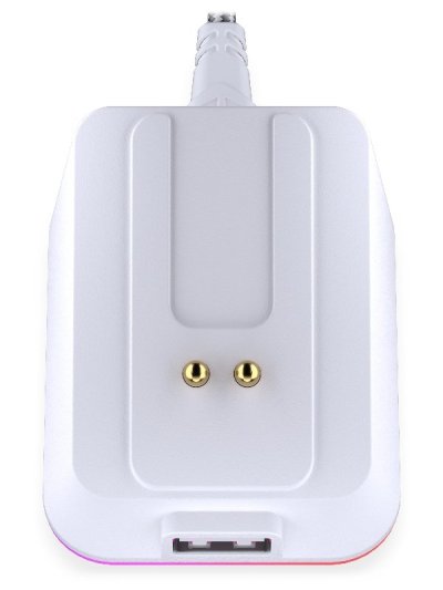 Magnetická bezdrátová nabíjecí stanice RGB podsvícení (11 režimů) USB-A port pro 2,4 GHz dongle Magnetické uchycení myši Rozhraní: USB-C (napájení), USB‑A Délka kabelu: 180 cm