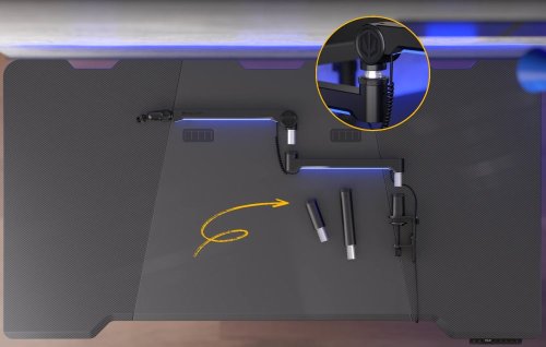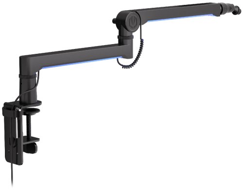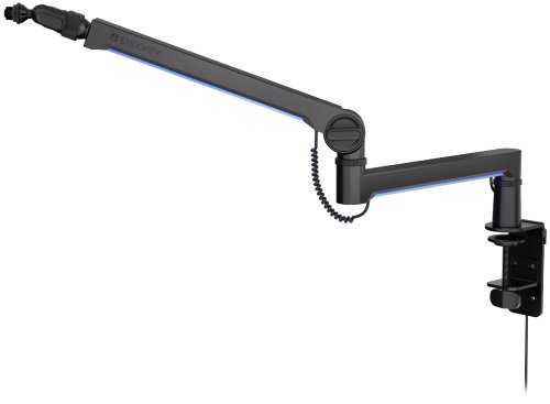 Nastavitelné rameno s vícebarevným podsvícením a 3 klouby pro ideální polohu mikrofonu při streamování nabízí jednoduchou a pevnou montáž pomocí šroubu ke stolní desce o tloušťce 15 až 105 mm. Stojan je vhodný pro všechny běžně používané mikrofony do hmotnosti až 2 kg. Díky kulové hlavě s 360° rotací a nastavitelným prodlužovacím segmentům (82 mm a 157 mm) můžete mikrofon umístit přesně podle svých potřeb. Předností jsou také vestavěné konektory USB a USB-C, systém pro skryté vedení kabelů či podpora 5/8", 3/8" i 1/4" závitů.