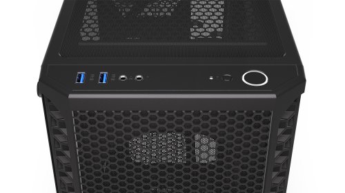 Přední vstupy/výstupy: *2× USB-A *1× Headphones (HD Audio) *1× Microphone (HD Audio) *1× POWER button *1× RESET/LED button