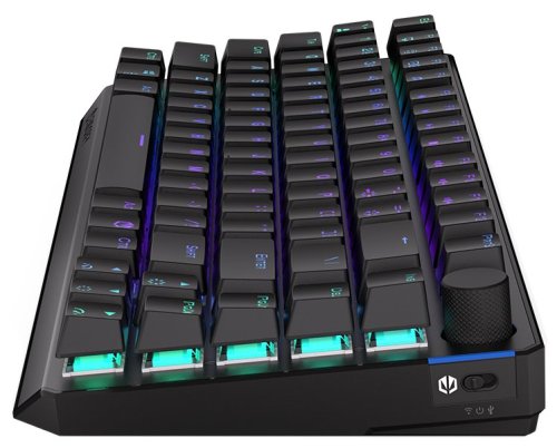 Parametry *Typ produktu: Klávesnice *Typ klávesnice: Mechanická *Barva: Černá *Rozložení: US ANSI *Rozměry [mm]: 326×136,2×42,5 *Hot-swap: Ano *Barva spínačů: Červená *Typ spínačů: Kailh Box Red *Počet kláves: 82 *Podsvícení: RGB