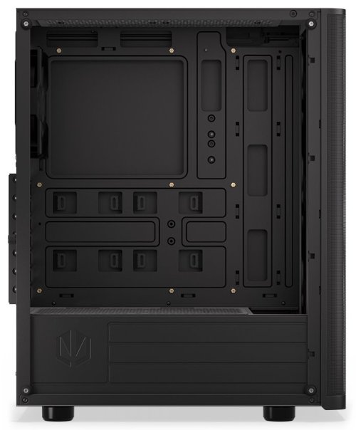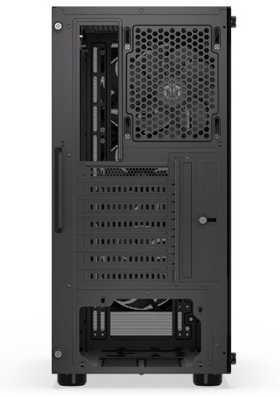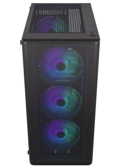 Skříň formátu Middle Tower s průhlednou bočnicí z tvrzeného skla nabízí dvě 2,5" pozice pro SSD disky a jednu 3,5" pozici pro pevný disk. Na horní části se nachází dva USB 3.0 porty, sluchátkový výstup a audio vstup pro mikrofon. Vybavena je čtyřmi 120 mm ventilátory s ARGB podsvícením, které spolu s perforovaným čelním panelem zajišťují dostatečné proudění vzduchu. Důmyslné řešení umožňuje pohodlné umístění až 360 mm dlouhého výměníku vodního chlazení na přední straně. Ve skříni je dostatek prostoru pro chladič CPU do výšky až 161 mm a grafickou kartu o délce až 315 mm. Dodávána je bez zdroje. Součástí je také sada prachových filtrů.