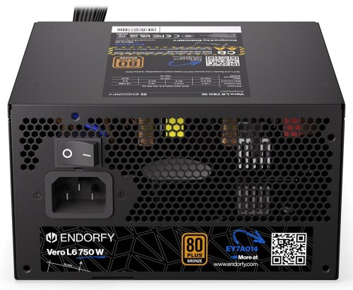 Napájecí zdroj Endorfy Vero L6 Bronze 750 W je navržen tak, aby spolehlivě a v tichosti utáhnul i výpočetně náročné PC sestavy. Díky certifikaci 80 PLUS Bronze a Cybenetics Silver dosahuje vysoké účinnosti, takže nebudete platit zbytečné účty za elektřinu. Současně podpoří stabilní napájení, ať už se jedná o herní, nebo pracovní počítač.