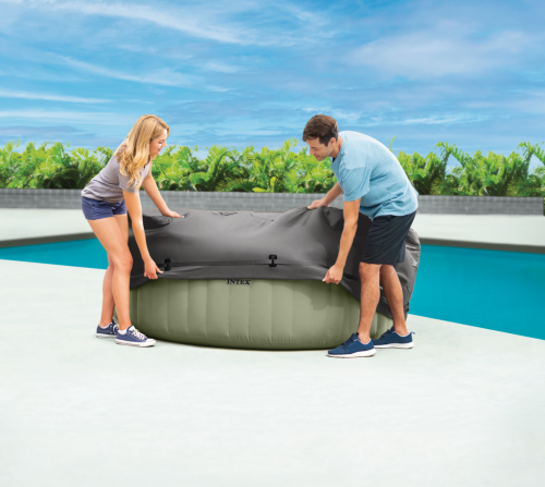 Energeticky úsporný termokryt je ideální k ochraně vody před nečistotami a zároveň udržuje teplotu vody až o 50% déle díky vysoké hustotě tepelně odolné pěny. Kryt chrání vířivku také před vnějšími vlivy jako je poškození propíchnutím či poškrábáním nebo nepříznivé počasí. Instalace krytu je snadná – jednoduše jej nasaďte na vířivku, zapněte bezpečnostní přezky a uzamkněte klíčkem. Je kompatibilní s kulatými vířivkam pro 4 osoby (196 × 71 cm).