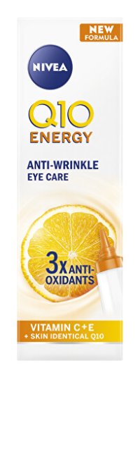 Chraňte jemnou pleť kolem očí a zabraňte vzniku vějířkovitých vrásek. Známky únavy se často projevují na citlivé pleti kolem očí. Chraňte pleť kolem očí před únavou a vznikem vrásek a dodejte jí novou energii ve formě dvou silných antioxidantů. 100 % pleti identický koenzym Q10 v kombinaci s čistým vitamínem C citlivou pokožku vyživí, zmírní známky únavy a viditelně redukuje jemné linky kolem očí. Oční kontury zpevní a vyhladí.