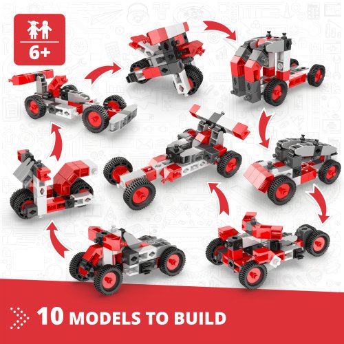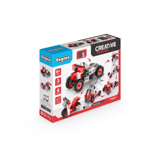 Stavebnice řady Engino Creative Builder podporují tvořivost a manuální zručnost dětí. Umožňují snadno a rychle přetvářet jeden model na druhý. Dle přiloženého návodu a mobilní aplikace krok po kroku snadno vytvoříte 10 různých modelů. Interaktivní aplikace Engino kidCAD® zobrazí modely ve 3D, které si můžete libovolně otáčet, prohlížet a upravovat. Kompatibilní s ostatními druhy stavebnic Engino. Vhodné od 6 let, vyrobeno na Kypru EU.