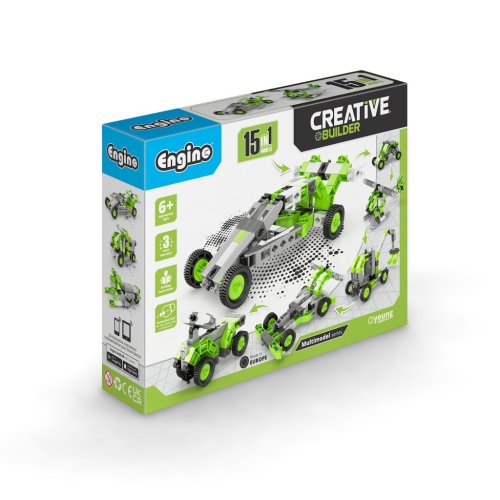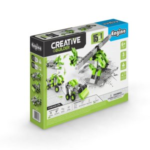 Stavebnice řady Engino Creative Builder podporují tvořivost a manuální zručnost dětí. Umožňují snadno a rychle přetvářet jeden model na druhý. Dle přiloženého návodu a mobilní aplikace krok po kroku snadno vytvoříte 15 různých modelů. Interaktivní aplikace Engino kidCAD® zobrazí modely ve 3D, které si můžete libovolně otáčet, prohlížet a upravovat. Kompatibilní s ostatními druhy stavebnic Engino. Vhodné od 6 let, vyrobeno na Kypru EU.