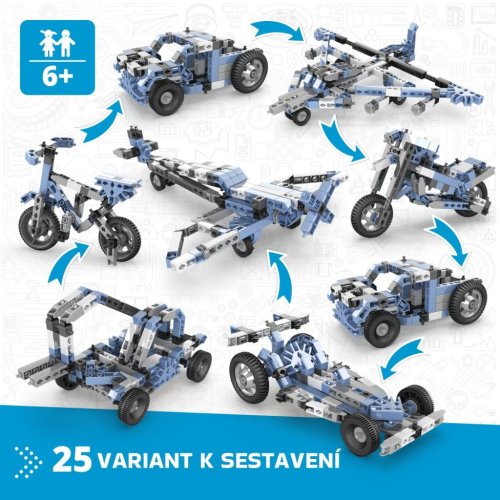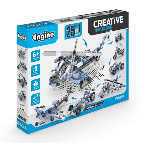Stavebnice Engino Creative Builder 25 modelů je určena dětem od 6 let a nabízí širokou škálu možností pro rozvíjení kreativity a manuální zručnosti. Díky této stavebnici lze sestavit až 25 různých modelů, které zahrnují například vrtulník, motocykl, auto nebo bagr. Stavebnice je vyrobena z kvalitních plastových dílků v kombinaci modré, šedé, černé a bílé barvy, které jsou pevné a zároveň bezpečné pro děti.