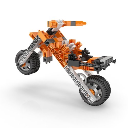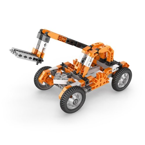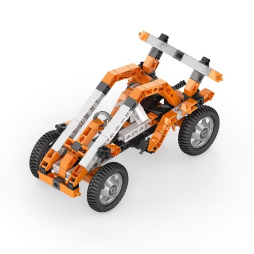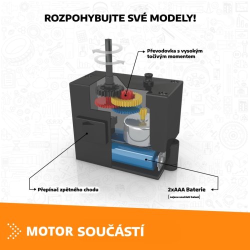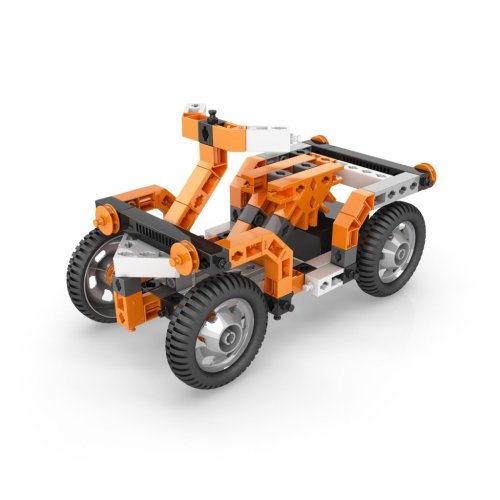 Sada obsahuje dílky v oranžovo-černo-bílé barevné kombinaci, které jsou vyrobené z kvalitního plastu a umožňují sestavit různé typy vozidel, letadel, jeřábů či zvířat. Součástí stavebnice je také motor s převodovkou, který umožňuje rozjet sestavené modely. Motor se napájí dvěma AAA bateriemi, které nejsou součástí balení. Přepínač zpětného chodu a převodovka s vysokým točivým momentem zajišťují funkčnost a možnost nastavení směru pohybu, čímž se modely stávají nejen statickými, ale i interaktivními.