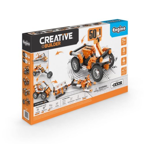 Stavebnice Engino Creative Builder 50 modelů s motorkem je navržena tak, aby podporovala kreativitu a manuální zručnost dětí od 7 let. Díky této stavebnici lze sestavit až 50 různých modelů, což umožňuje dětem přetvářet jeden model na druhý podle přiloženého návodu a interaktivní mobilní aplikace Engino kidCAD®. Aplikace nabízí 3D zobrazení modelů, které si uživatelé mohou libovolně otáčet, prohlížet a upravovat, což přispívá k lepšímu pochopení konstrukce a motivuje k dalšímu tvoření.