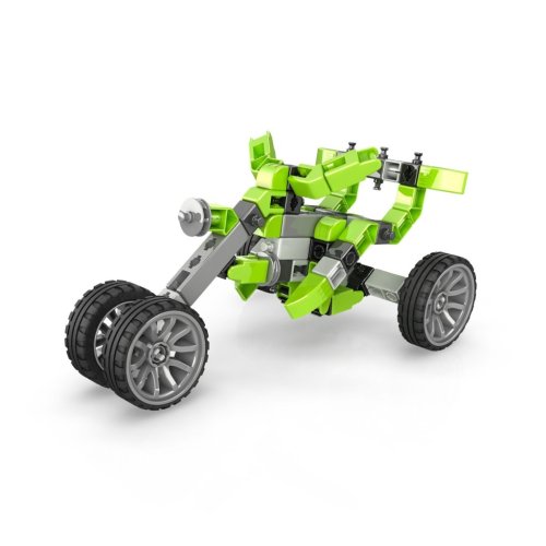 Modely v sadě jsou sestaveny z plastových dílků v kombinaci zelené, šedé, černé a bílé barvy, které jsou pevné a snadno spojitelné díky systému Snap-Fit. Mezi modely najdeme například terénní buggy, čtyřkolku, helikoptéru, sněžný skútr a další varianty, které jsou nejen vizuálně atraktivní, ale také funkční. Velká kola zajišťují stabilitu a možnost jízdy po různých površích, zatímco detaily jako přední světlomety a aerodynamické tvary dodávají modelům realistický vzhled.