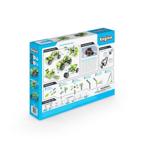 Balení stavebnice je pevné a přehledné, s ilustracemi všech pěti variant na přední i zadní straně krabice, což usnadňuje výběr a inspiraci. Součástí balení je také návod na sestavení a informace o vzdělávacím přínosu stavebnice. Výrobek je vyroben na Kypru, v souladu s evropskými bezpečnostními normami, a je určen pro děti starší 9 let. Celkově tato stavebnice nabízí nejen zábavu, ale i rozvoj logického myšlení, manuální zručnosti a technického uvažování.