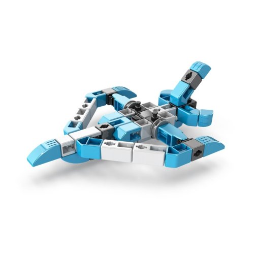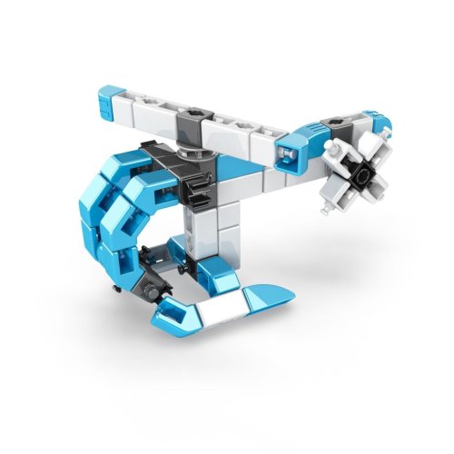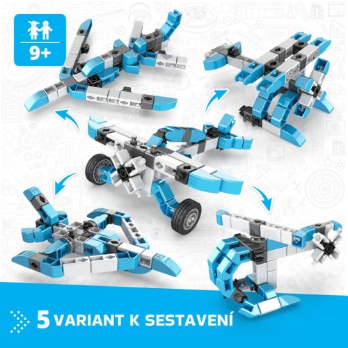 Stavebnice Engino Inventor Letadlo 5 modelů je určena dětem od 9 let a nabízí možnost sestavit pět různých variant modelů letadel. Díky kombinaci bílé, modré a černé barvy jednotlivých dílků působí stavebnice moderně a přehledně. Komponenty jsou navrženy tak, aby bylo snadné je spojovat pomocí systému Snap-Fit, což usnadňuje sestavení bez nutnosti použití lepidla nebo nářadí. Součástí balení je i speciální nástroj pro snadné rozebrání dílků, což podporuje opakované používání stavebnice.
