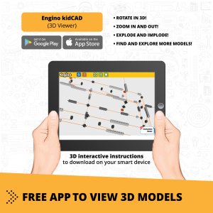 možnost sestavit 3 modely, aplikace Engino kidCAD zobrazující 3D model