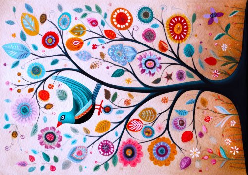 ENJOY Puzzle Kéž modrý pták štěstí přiletí na tvůj strom 1000 dílků