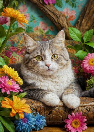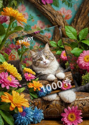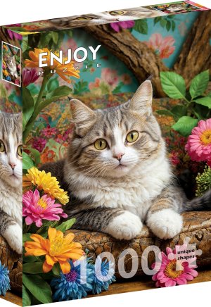 ENJOY Puzzle Kočka v květinách 1000 dílků