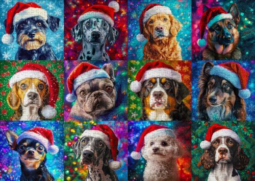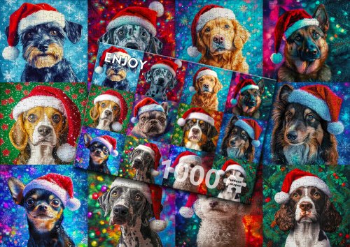 ENJOY Puzzle Vánoční psi 1000 dílků