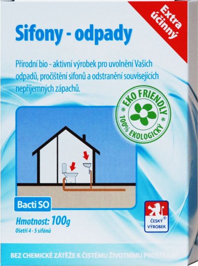 Přírodní a ekologický prostředek je určen k uvolnění a zprůchodnění ucpaného a zaneseného odpadního potrubí a sifonu. Při jeho používání dochází k odstranění nepříjemného zápachu vycházejícího ze sifonu nebo odpadního systému.