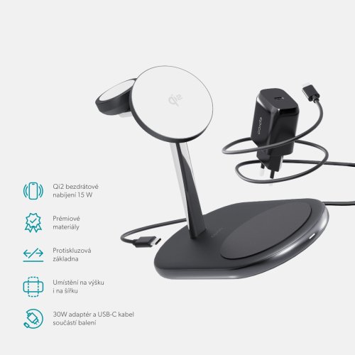 Bezdrátová nabíječka Epico Qi2 3in1 Mag+ nabíjecí stojánek černá