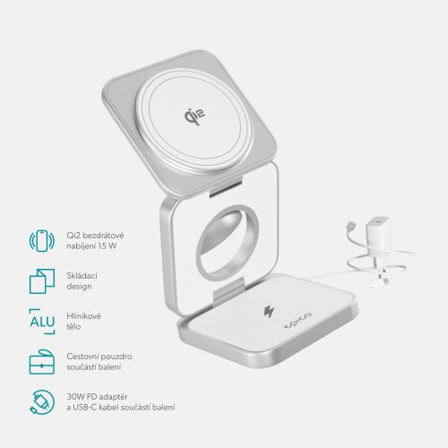 Bezdrátová nabíječka Epico Qi2 3in1 Mag+ nabíječka bílá