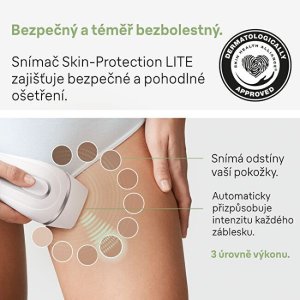 Až 1 rok dokonale hladké pokožky s IPL epilátorem Braun, který přináší viditelné výsledky již po 3 použitích. Díky inteligentnímu snímači Skin Pro (SensoAdapt™) přístroj automaticky přizpůsobuje intenzitu záblesků odstínu vaší pokožky, čímž optimalizuje epilaci na různých částech těla. Až 100 záblesků za minutu zajistí rychlé a precizní ošetření s minimem vynechaných míst. Jemný režim redukuje intenzitu světla pro šetrnou epilaci citlivých oblastí, jako je obličej, podpaží nebo oblast bikin.