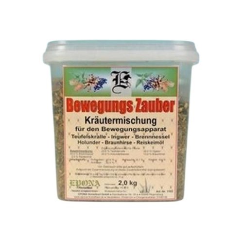 EPONA Bewegungs Zauber je bylinná směs s čistě přírodním složením: ďáblův dráp (Harpagophytum procumbens), zázvor, kopřiva, černý bez, hnědé proso a olej z rýžových klíčků. Používá se k podpoře pohybového aparátu, a to především při různých problémech svalstva, chrupavek, vazů, šlach a kloubů. Pomáhá při léčbě artrózy a dalších kloubních nemocí. Směs je koňmi velmi dobře přijímána, je bez vedlejších účinků a nesnižuje účinnost jiných léků. Ďáblův dráp (Harpagophytum procumbens):